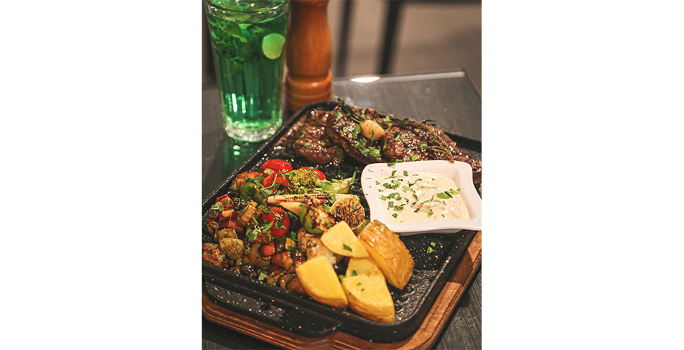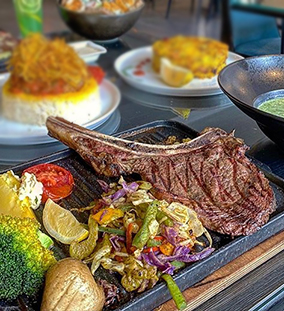 راسته فیله با دنده گوساله 350 گرم، ساید سبزیجات با برنج مکزیکی